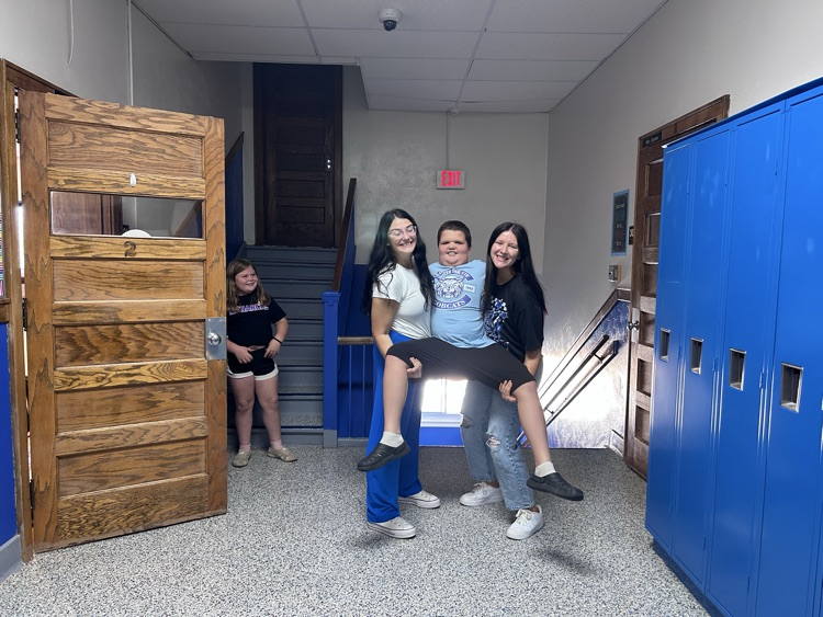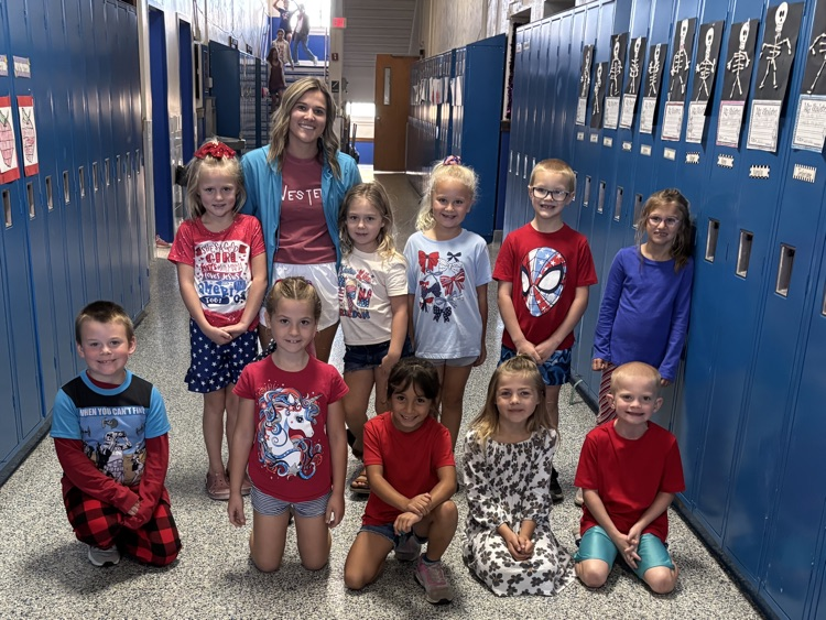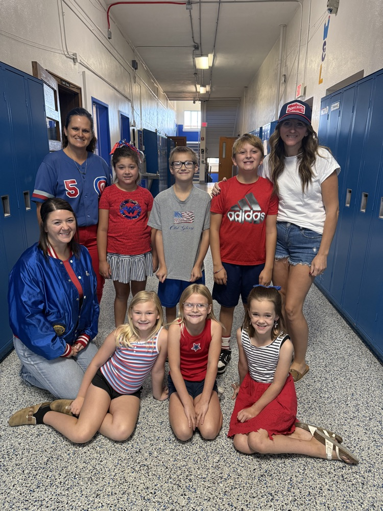 Ms. Schafer and her 4th grade class loved dressing up for homecoming week! 💙🤍